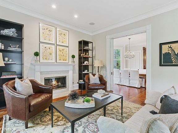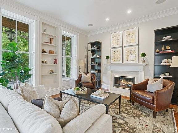 Ideally located on a 37.5' lot on one-way Janssen, one of the Southport Corridor's most desired streets, this remarkable home offers an extra-wide footprint with 6 Bedrooms, 4 full Bathrooms and incomparable outdoor space. This elegant property shines with soaring ceiling height, expansive room sizes, gorgeous vintage detail, incredible natural light throughout, plus multiple gathering and office spaces. A stunning oversized front porch flanks the high first floor and opens into a gleaming foyer with original preserved double doors that overlooks a formal living room with fireplace and massive windows with original shutters. Pocket doors lead to a separate dining room complete with gorgeous hutch and chandelier and adjacent to the den. The rear of the home offers an ideal layout with direct access to two massive customized decks that are perfectly situated for outdoor grilling and entertaining and are easily accessible to the timeless kitchen with Waterworks backsplash, stainless steel commercial grade appliances including a new double oven, plus an eat-in breakfast room with two pantries, all overlooking the great room with walls of windows, fireplace and built-ins. The upper level features four bedrooms including a gorgeous primary suite with marble bathroom, steam shower and soaking tub and architectural detail including vaulted ceilings, transom and a large separate sitting room that leads to a private deck. Three additional bedrooms, a full bathroom and upstairs laundry complete this level. The unique and special ground floor has an additional foyer entry leading to a large gathering space with wet bar, spectacular curved wall flanked with built-ins, and side door access straight to the yard. A media room, massive mudroom, guest room, full bathroom and additional office with windows overlooking the rear patio complete this level. A partially finished basement sits below the back of the house and offers an abundant amount of additional storage. All new mechanicals, including 3 HVAC systems. The professionally landscaped and irrigated side yard is fully secured with upgraded front gate and surrounding fencing. Perfectly located and surrounded by large lots and mature trees, this striking home is a block away from the heart of the Southport Corridor's shops, restaurants, boutiques, grocery and transportation that make this location and neighborhood so highly coveted.