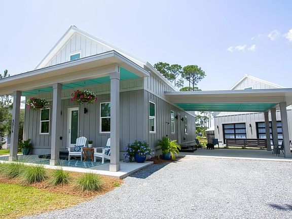 One or more photo(s) has been virtually staged. Includes $25000 closing concession credit with closing that takes place before 12/31/2025. This fully furnished 2023-built coastal retreat offers not one but two incredible living spaces—perfect for large groups or flexible rental income. The property includes a 2,700 sq. ft. main home plus a 1,100 sq. ft. detached carriage house, together sleeping up to 18 guests. The carriage house features a spacious game room/family room with full bath downstairs, and an upstairs studio apartment with kitchenette, ideal for guests or a separate rental. Meanwhile, the main home provides 4 bedrooms, 3 baths, a stylish kitchen, and two open living areas designed for gatherings. Set on a large, quiet cul-de-sac lot just steps from the waterfront and community pool, this property blends indoor comfort with outdoor fun. Highlights include a huge firepit area, two outdoor showers, and a built-in grill station. Owners and guests also enjoy exclusive beach club amenities—pools, grills, changing rooms, bathrooms, and boardwalk access to the beach. Located along Florida’s Forgotten Coast with nearby fishing, boating, golfing, dining, and shopping, this home is the ideal vacation destination and proven rental investment.