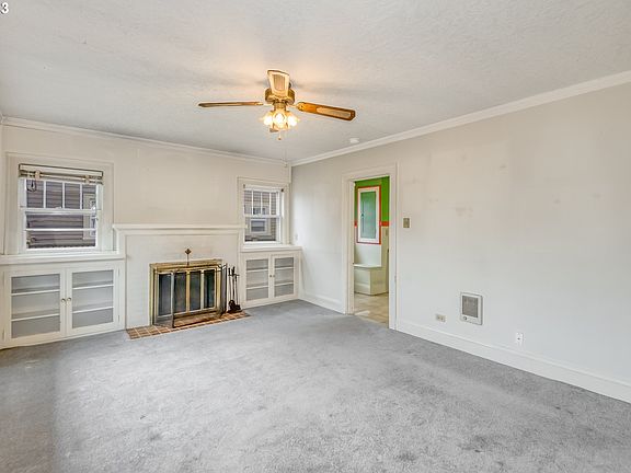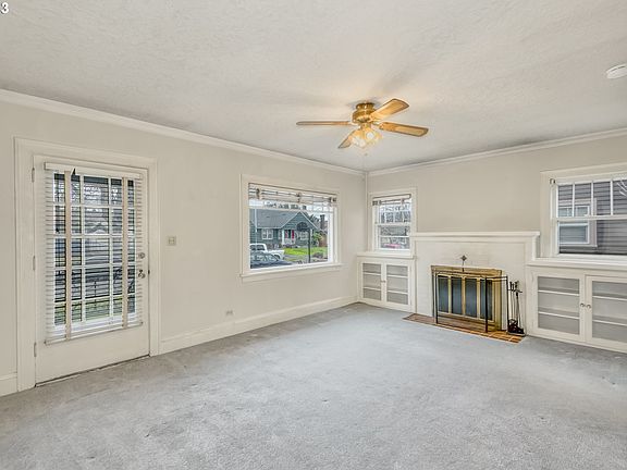Cosmetic fixer sold As-Is w/ great features in quiet n'hood! Bring paint brush & expose oak & fir floors under carpets for instant equity! Roof ~ 5 yrs old. Spacious kitchen w/ nook, gas stove. Charming originality throughout... built-ins, fireplace, glass door cabinets, 7" baseboards. Woodwork in great shape! 7 ft ceiling height in basement. Finished room in basement w/ Walk-in Closet not conforming as a bedroom. Large detached garage w/ covered outside area & separate shop. Gas furnace.
