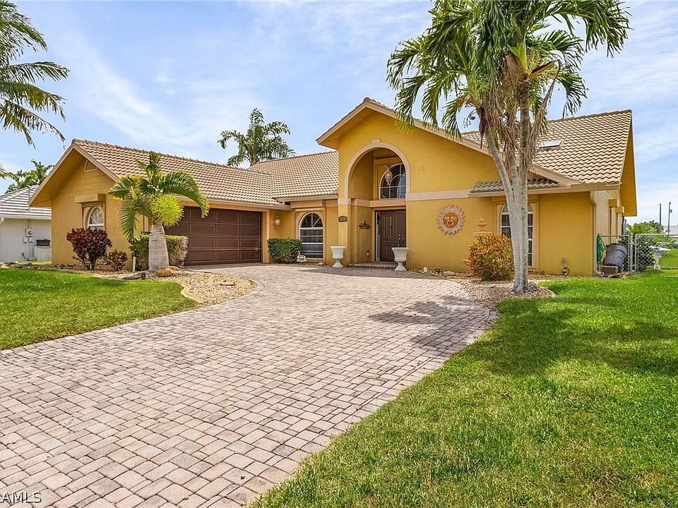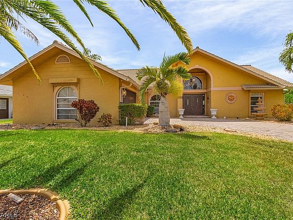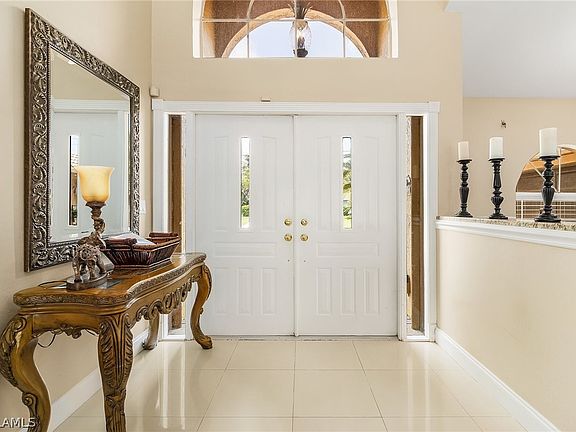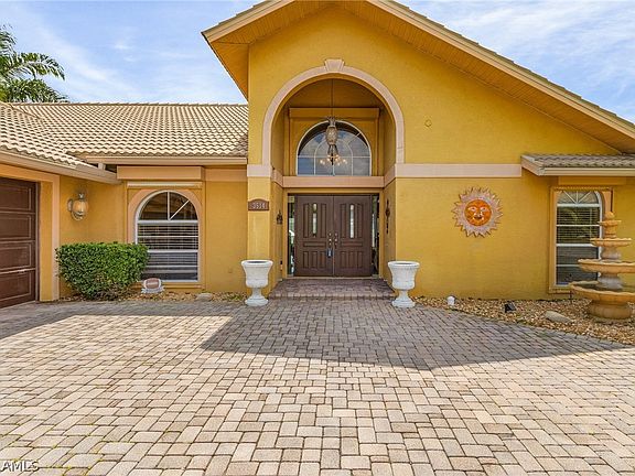 Absolutely gorgeous furnished direct gulf access pool home. Only 5 minutes to the Caloosahatchee River by boat with No bridges. Long Paver driveway with side entry garage. Large foyer with cathedral ceilings and 2 exterior lighted columns exteriorly. Living areas have 18" porcelain tiles with wood plank flooring in bedrooms. Custom shelving and entertainment center in living room with large TV and fireplace. Dining room features a custom mural painting on wall of the Italian Almalfi Coast. Kitchen has granite counter tops with newer appliances. New tile roof in 2019. New AC in 2019. New pool heat pump in 2021. New Pool Cage in 2024. Pool resurface in 2021. Four new hurricane impact glass sliders to lanai in 2020. Rolldown storm shutters. Tastefully furnished throughout. Huge lanai area next to pool area overlooking the gulf access canal. Not in flood zone, no flood insurance needed. Conveniently located near shopping and restaurants. Only 30 minutes to SW International Airport and Fort Myers Beach. Come see this immaculately kept Florida dream home, you won't be disappointed.