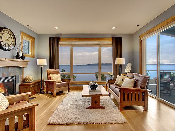 Waterfront Living! Enjoy 40 ft of beach; moor your boat; paddle board & walk in the sand. Amazing Sound & Mt Rainer views from this superb home Built Green in 2007. Move in and watch the changing horizon filled with freighters, tugs & sailboats. Fine craftsmanship with an open floor plan, chef's kitchen and covered deck to use year round. Master suite with private office/tv rm, his & her closets. 3-car garage, parking and great attic/300+ sq ft of storage. No work required just bring your sandals and live your dream!