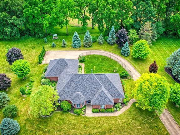 Sprawling All Brick Home, Situated On Over 2.4 Acres - You Will Fall In Love With The Curb Appeal. As You Drive Down The Winding Drive, You Embark Upon A Well Built And Well Maintained Home. Roof And Gutter Guards All Brand New In May 2024. This Home Offers An Open Concept, Beautiful Kitchen, Iron Fence, And Tons Of Upgrades. Custom Trim, Wired For Surround Sound, Fresh Paint, Furnace New In 2017, Garage Doors Are Newer, Plus A Central Vac System Too. Huge Owner's Suite And A Private Den/office. The Kitchen Was Totally Remodeled In 2019 With A Large Island, New Appliances And Stylish Quartz Counters. The Kitchen Even Offers An Extra Beverage Refrigerator. No Basement To Worry With But Plenty Of Storage. The Garage Will Not Disappoint - 3-car, Heated With A Walkup, Floored Attic. Take Immediate Possession.