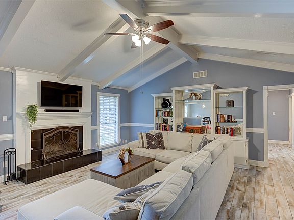 Oversized backyardExtended barTiled bathtub and showerPrimary bedroomLarge patioOpen kitchenVaulted ceilings