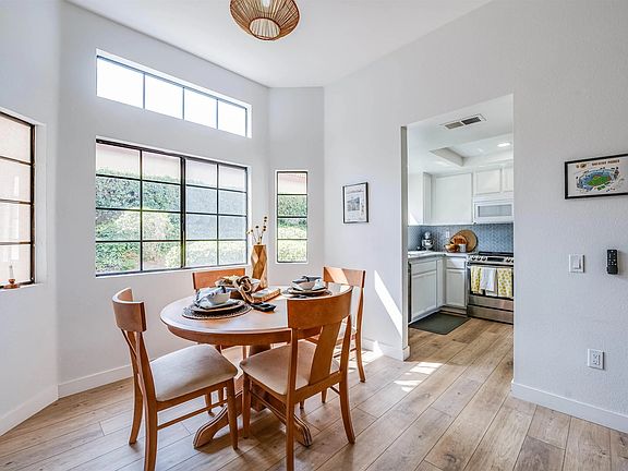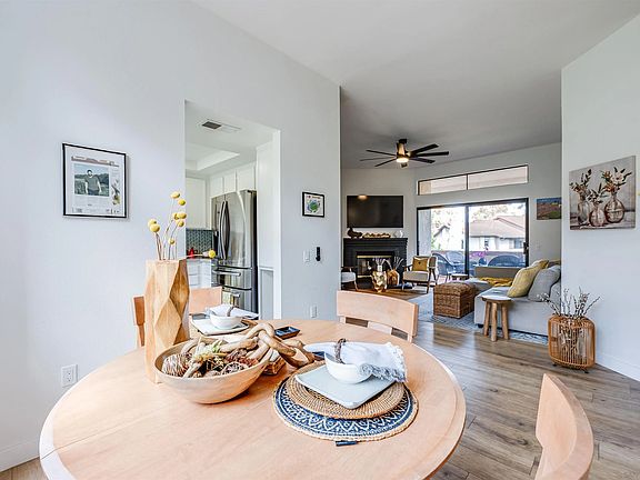 Charming and spacious remodeled condo in the highly desired community of Calavera Hills. Tucked in a corner location with views and privacy.Soaring 10ft ceilings w/ new flooring & paint throughout. Updated kitchen with stainless steel appliances, custom tile backsplash, and granite countertops. Spacious living room with cozy fireplace and slider to outside living. Enjoy the sunrise/sunset views from your large covered patio.Primary bedroom w/ canyon views features a walk-in closet, dual sinks in new vanity. Community has a pool and spa. Water, sewer, trash, and community landscaping are all included in your HOA fees. Great hiking trails, parks, schools, popular restaurants, downtown Carlsbad Village and the beach just minutes away!