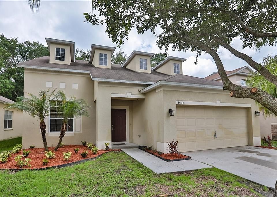 New Listing in Lake Bernadette! This 5 bedroom, 2 .5 baths, 2 car garage turn key with all the upgrades. This is moved in ready home freshly painted throughout featuring high volume ceilings. Upgraded engineered hardwood flooring throughout the first floor including the master bedroom. Open floor plan with Kitchen updates includes; gray cabinets, level 3 granite countertops, stainless steel appliances, not to mention the stunning back splash. Master bedroom and bath on first floor. Master bath includes modern tile and glassed in shower. Second floor has a common area for additional space perfect for family that need additional room. The extended screened lanai has privacy but also plenty of room for BBQs, morning coffee, or drinks to relax in the evening. This is minutes from Prime Outlets, Wiregrass Mall, dining, theaters, medical centers, and I75 for easy commute to Tampa, Orlando, Brandon, Land O Lakes, Lutz or the Gulf Coast Beaches.