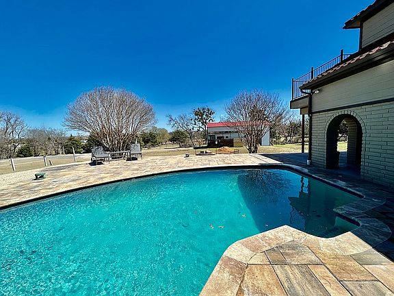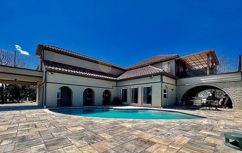 EMBRACE THE SPIRIT OF COUNTRY CHARM with this unique Spanish style ranch home occupying a peaceful position with distant views of Lake Lavon. This charming home features interesting architectural detail & bright, open living spaces. Sparkling blue pool creates impressive drive-up. There's plenty of potential for additional improvement for a savvy buyer! Bonuses include 2 ponds, dog kennel & option for green house NESTLED ON 5 BEAUTIFUL ACRES!