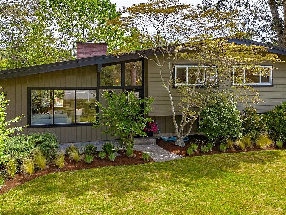 Stylish and functional, this classic mid century modern home features clean architectural lines, vaulted ceilings, and a well-designed floor plan. Newly refinished oak hardwood flooring through main living area. The spacious kitchen with stainless steel appliances is perfect for both cooking and gathering. A generous mudroom and a flexible space on the main floor—ideal as a family room, home office or studio—add versatility. Upstairs you'll find a lrg primary bdrm and updated ensuite plus a 4 pc main bath and laundry. Downstairs offers great separation for teens or in-laws. Enjoy BBQs on the sunny patio, or unwind by the cozy wood burning fireplace. The fenced yard is ideal for kids and pets. Two heat pumps provide year round comfort. Single carport and plenty of storage. Well maintained and updated, this home is move in ready. Located just steps to UVic, Mt. Tolmie, and Henderson Rec Centre—with Cadboro Bay Village and Gyro Beach only minutes away. A fabulous home in a prime location.