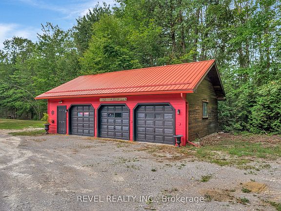 Welcome to 3515 County Rd 121, this stunning 4+1 bedroom 3 bathroom log home with metal roof, offers the perfect balance of rustic charm and modern comfort. Walk in and be mesmerized by the grand foyer & living area, cathedral wood ceilings, cozy fireplace and abundant natural light from picturesque windows creating a warm and inviting atmosphere.The kitchen/dining combo is a cooking paradise, featuring newer appliances, propane stove, OTR microwave, pantry and ideal for both daily living and entertaining. Gorgeous spiral natural wood staircase leading you to the upper level of the home with additional bedrooms, full bathroom and sitting area loft. Primary Suite with walk out Juliet Deck. Lower level with full recreational room, laundry area, sauna, built in hot tub, bathroom and walk out to yard. Perfect in law suite potential with separate entrance.Step outside to the expansive wraparound deck with breathtaking views of the pond and surrounding 1.89 acres of forest. Whether you're enjoying a quiet morning coffee watching the wildlife or hosting family and friends in the evening watching the fire flies having a bonfire, this outdoor space is sure to impress.This property has several uses, perfect as a year-round residence, seasonal retreat, multi family or income opportunity, this property offers a lifestyle of peace, beauty, and versatility. Bonus three car detached garage with hydro. Do not miss this opportunity to make this your next home.