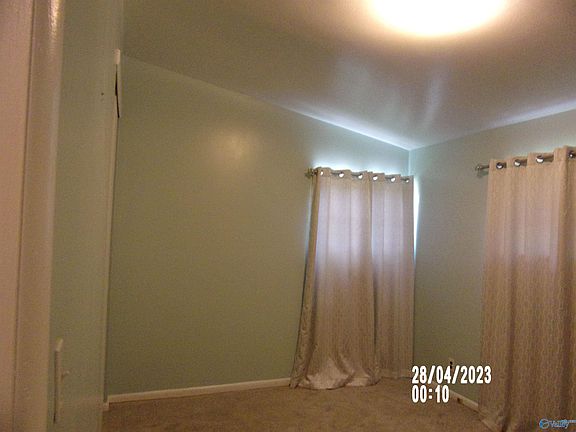 Starting out or starting over. 3 bedroom 1 bath , 3rd bedroom could be used as a dinning room , Fenced back yard. Double carport end to end. Extra large patio. Washer dryer connections. Eat in kitchen with white cabinets. New carpet in 2 bedrooms, 3 window units, Drapes do not remain. All this on a quiet street in west Huntsville. Payments on this house should be cheaper than rent. Its the buyers responsibility to verify all listing information.