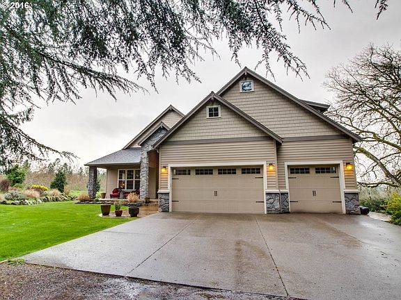 Nestled between farmland and the Molalla River St Prk lies a Craftsman Style beauty. Warm and inviting wood floors lead to vaulted great room with floor to ceiling windows, gourmet kitchen with french doors to large covered patio. Main floor living plus, 4th bedroom/bonus suite upstairs. Beds 1-2 share Jack-Jill Bath. 3 car garage and outbuilding for storage or toys.Unfinished basement has utilities and 1200 sf of storage.