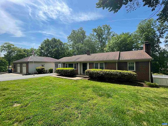 OPEN SUN 6/25 1-3PM. PRICE REDUCED! GREAT VALUE! Terrific location just 4 miles east of Pantops. Charming brick/vinyl 4 BR rancher on NEARLY AN ACRE located next to the entrance to Glenmore Country Club. The 1178 SF GARAGE (with MORE STORAGE BELOW including roll up door) is a GREAT OPPORTUNITY FOR SHOP, STUDIO, extra storage, you name it! Garage can fit 4 CARS! Tasteful improvement by prior owners around 2013 include: screened porch; fully finished walkout terrace level with 4th BR, family/rec room, den, full bath and laundry room with utility sink; remodeled baths and kitchen with granite countertops and SS appliances. Enjoy the IN GROUND POOL and the private, nicely landscaped large backyard. An easy walk to Glenmore and neighboring Rivanna Village. Septic pumped in April 2023. Wiring for portable generator in place.