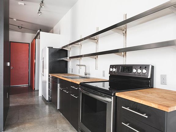 The 1-bedroom units are located on the 3rd floor of the building. The living room has a garage door that opens up to a panoramic mountain views. These units have concrete floors, induction stoves, solid butcher block countertops, stackable washer/dryer in the unit, european finishes and stainless appliances. Tenants will also have access to plenty of free parking. Freight Residences is located in the TAXI community, with Black Black Coffee and Kitchen, Comal Heritage Food Incubator, Fitness Center with steam room, Rec Room w/ ping pong, arcade machine & AV, shared conference rooms, dog park, outdoor movie theatre, community garden, basketball court, Goldie and Bob Hair/Nail Salon, shipping container swimming pool with beach and grill area, Open Air Academy - Early Childhood Education Center, periodic visits by food trucks and outdoor cinema nights during the summer and fall. Minutes away from I-25 and I-70 and a few steps away from South Platte River bike path and Coors Field and LoDo. Tenant will be responsible for electric, gas and water. $49 rental application for each adult living in unit.