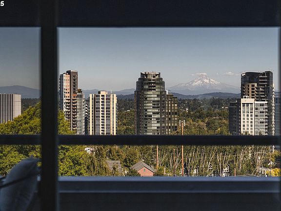 Enjoy sweeping views of Mt. Hood, Mt. St. Helens, downtown Portland, and the peaceful Terwilliger woods from this stylish, end-unit condo filled with natural light. A dramatic wall of windows brings the outdoors in, illuminating the open-concept living and kitchen area, while the spacious deck offers the perfect spot to soak in breathtaking sunrises or unwind with the evening city lights. The updated kitchen features quartz countertops, stainless steel appliances, and designer tile, with a cozy dining area that makes the most of the views. The bedroom overlooks lush greenery for a quiet retreat, and the renovated bathroom includes a rain showerhead for a spa-like touch. As an end-unit with no one directly above and pet-friendly outdoor space just steps from your door, you’ll love the added peace and privacy. Located just minutes from OHSU, public transit, coffee shops, and scenic Willamette River trails, this home offers the perfect balance of city convenience and natural beauty. Extras include in-unit laundry, air conditioning, an assigned parking space (#47), ample guest parking, small storage unit, and a dedicated HOA that covers exterior maintenance, landscaping, water, garbage, and more. This move-in-ready gem is your chance to own a truly special home in one of Portland’s most desirable communities.