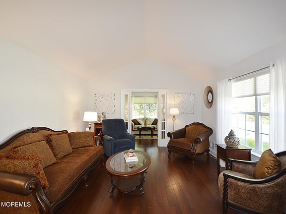 Bright, Sunny and Absolutely Beautiful Cambridge II Model located ''Up on the Hill'' with a Wooded Rear Yard ~ Move right into this lovely home ~ First time offered ~ Hardwood floors in most rooms ~ Updated Front Facing Eat in Kitchen offers painted cabinets, Crown Molding, a Brand New Samsung French Door Refrigerator (9/2025), 5 burner Stove, Microwave and Dishwasher, granite countertops, tile backsplash, bay windows and laminate floors ~ Dining Room with Crown Molding, bay windows and Hardwood Floors ~ Living Room with cathedral ceilings and French doors that lead to the four season sunroom with a door to the oversized double wide private patio and wooded rear yard ~ Large Primary Bedroom with Cathedral Ceilings, ceiling fan, a 8 x 8 sitting alcove, two double closets and a beautifully renovated Bath with a double stall shower ~ Guest Bedroom has hardwood floors and a Jack and Jill door to the Renovated Guest Bath with a tub ~ The direct entry two car garage and pull down stairs for additional attic storage ~ Lake Ridge is a Gated Active Adult Community which offers LOW HOA FEES, LOW TAXES, a heated indoor pool which is open all year, an outdoor pool, a fitness center, tennis and pickleball courts, aerobics, yoga, bowling, bridge, bocce, dance, mahjongg, card rooms, billiards room, social room, library, community bus for shopping, many social clubs, multiday travel club, so much more and something for everyone. TRULY A MUST SEE HOME. COME JOIN US AND HAVE FUN! Don't miss out!