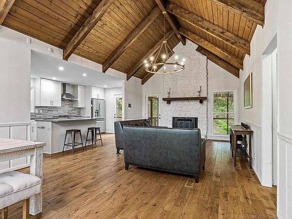 This beautiful A-Frame 3 bed& 2 bath home in Blue Lake Estates in Vestavia is conveniently located off of Hwy 280, I-459& The Summit. Nestled on a large private lot, this home is move in ready with gleaming hardwood floors& cedar beams that accentuate the cathedral ceiling.The open floor plan is just perfect for entertaining family& friends that opens up nicely to the large screened in porch that overlooks the beautiful and very private backyard.The floor to ceiling windows allow all the natural sunlight to beam inside to brighten each day.The kitchen boasts ample cabinet space, quartz countertops and a huge island that opens up beautifully to the great room and dining room.Off of the kitchen is an oversized laundry room and pantry.Down the hall you will find 3 nice sized bedrooms& 2 baths with 1 being the primary bed with its own private bath.The primary bath has updated double vanities and shower.We can't forget the basement that has ample storage, a bonus room and a 2 car garage.