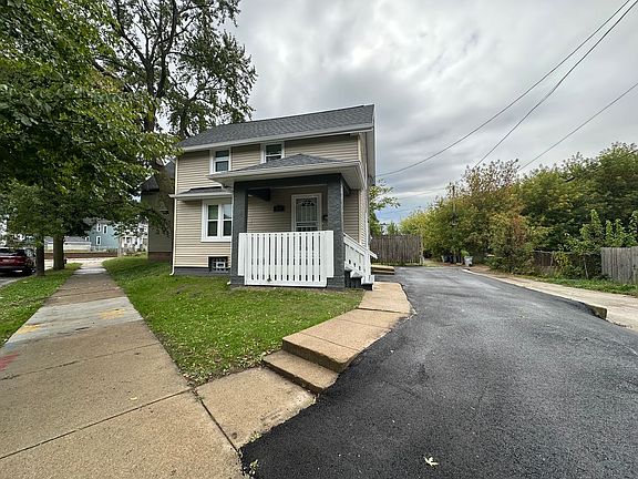This renovated single family rent to own home has 2 bedrooms, 1 bathroom, and a driveway. Features include hardwood floors, "low maintenance" exterior, wood accent wall, and new kitchen cabinets/counters. Remodeled bathroom with tiled tub surround. New roof, mechanicals, insulation and windows. Good size storage areas in basement and attic.