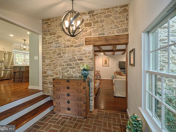 Welcome to 3515 Windy Bush Road, an exquisite residence originally crafted by Earl Jamison of Peddler's Village, now beautifully renovated to blend timeless elegance with modern comforts. A long private driveway sets the scene and welcomes you to your 4-bedroom, 5 -full bathroom haven situated on 3 acres. The current owners have tastefully added extensive hardscaping, including stone patios, terraces, a serene water feature and beautiful landscaping. Ensuring glorious views throughout every season. The inviting foyer, adorned with an original stone wall, sets the tone for charm and relaxation throughout the home. Here you are introduced to the remodeled kitchen, where white cabinets and a large center island provide an ideal space for culinary creations. High-end appliances and an additional wet bar area elevate the kitchen's functionality. The spacious breakfast or dining area offers stunning views of the wooded property and gardens. This level flows to hallway and the newly added primary en suite. This spacious bedroom includes a custom vanity area, sitting area and not to be forgotten double doors leading to a private outdoor escape for morning coffee and a breath of fresh air. The primary bathroom with custom cabinetry, quartz countertops, and radiant heated flooring, keeps you feeling like you are on a spa retreat. This level also includes a separate full bath, spacious laundry room and side door exit to the enclosed English garden. Join your company in the family room, where old barn beams, a wood-burning fireplace, and large windows allow the outdoors to seamlessly blend and set the mood. The second floor offers two spacious en suites, with hardwood flooring throughout and custom finishes. Transitioning to the additional wing is perhaps the perfect place to curl up and read your favorite novel. Spacious and bright, with a brick floor and outdoor views. This area leads us to a seperate entrance, and is currently permitted as an airbnb. Imagine your guests with this gorgeous living area, small kitchenette-like space, and their own laundry area. With a large bedroom and full bath, this private space makes anyone feel as if they are on vacation. This elegant residence combines modern comforts with rustic allure, ensuring a tranquil and luxurious living experience. With New Hope, Lambertville, Peddler's Village and surrounding towns at your finger tips, your choices for art, culture, dining experiences, & excursions are never ending