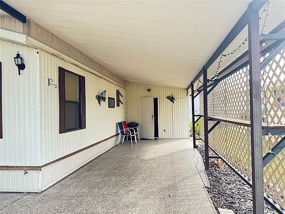 Welcome home to this beautifully maintained park model located in the desirable American Condominium Park community of Zephyrhills. Just across the street from all park amenities! This inviting Two-bedroom, one-bath home combines comfort, style and functionality in a peaceful setting. Step inside to find a modern kitchen with updated appliances, plenty of cabinetry, and a convenient layout that flows seamlessly into th e bright dining area - perfect for everyday meals or entertaining. The separate living room offers a cozy retreat for relaxing or enjoying time with friends. The master bedroom accommodates a king-size bed, while the second bedroom is currently set up as a home office, providing flexibility for work or guests. Out back, enjoy the lovely landscaped patio, an oasis ideal for morning coffee, or simply soaking up the Florida sunshine.American Condominium Park is a 55+ gated community with heated pool, clubhouse, exercise room, sauna, hot tub, tennis/pickleball courts, horse shoe pits, shuffleboard, and many more amenities. A friendly active community with dances, dinners, and entertainment. Perfect for full time affordable living and cost effective for snow birds. No rent as you own the land. Reasonable monthly fee that maintains the common elements and amenities for your use. The shed is plumbed for a washer and has extra storage for a workshop! Call for an appointment!