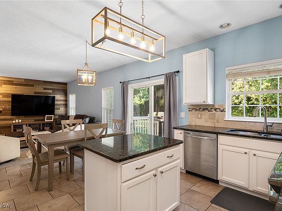 Step inside to find all-new carpet throughout, fresh and inviting spaces, and an open-concept kitchen and family room perfect for entertaining. The kitchen features white cabinets, granite countertops, and stainless steel appliances—with the dishwasher, stove, and microwave all replaced in 2024. A decorative accent wall and gas fireplace add warmth and style to the family room, while the front sitting room offers a flexible space that could easily serve as an office.