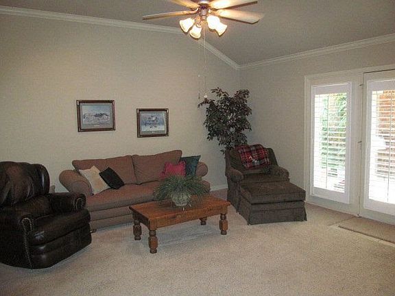 Subperb garden home with storage galore! Very open floor plan with large kitchen. Isolated master suite with double vanities, separate air flow tub and shower, huge closet. Courtyard area is lovely with flowering plants galore! Large utility room with big closet. 9x14.6 workshop built right with electricity. 2 year old water heater, near new dishwasher.