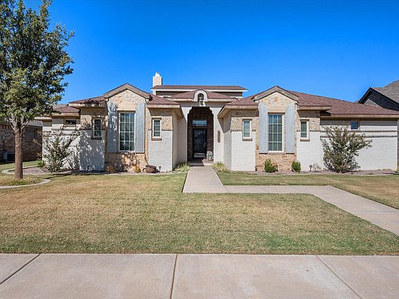 Spanish style Ventura home in Cotswold at Kelsey Park, four bedrooms, three full bathrooms with three car garage. Special ceilings, vinyl wood plank floors, open concept, large stone fireplace, stone countertops and backsplash in kitchen, designer tile over the gas cooktop with decorative vent hood. Stainless appliances: double ovens, commercial refrigerator and freezer column. Designer hardware. Bonus room that can be used as man cave, office or game room. Isolated primary suite, double vanities, tile shower and separate tub. Ample closet space with built in linen closet. Fire pit in backyard for the magical Lubbock nights and has been beautifully maintained.