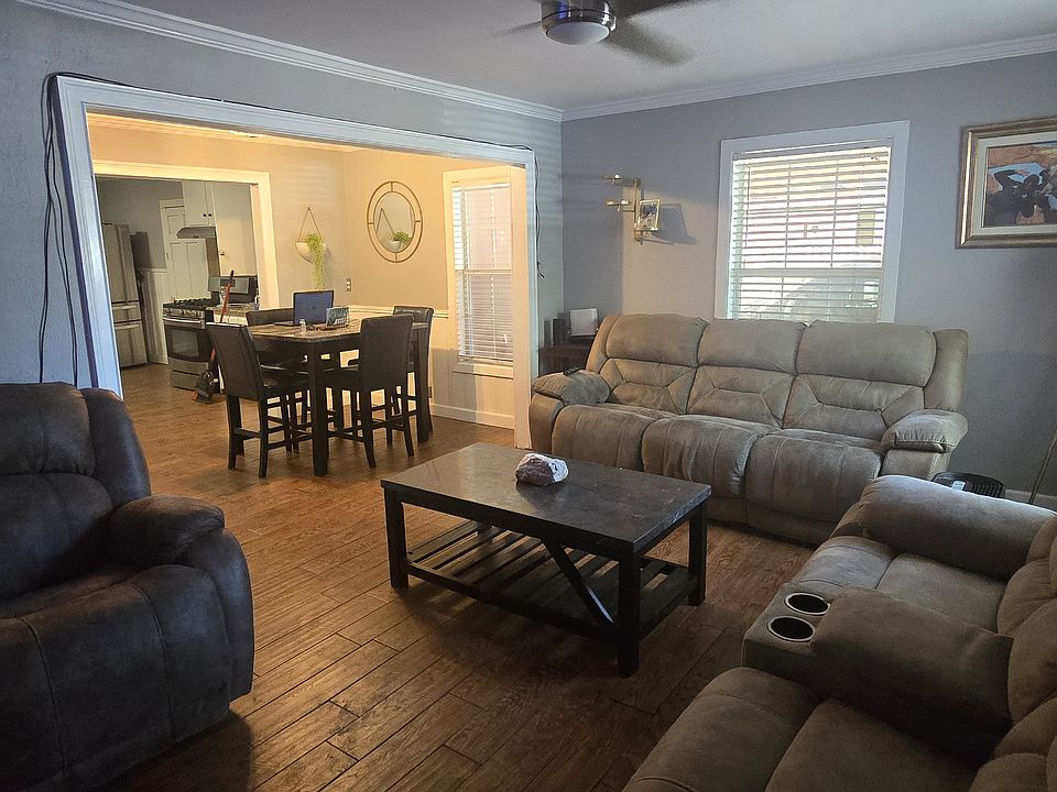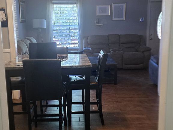 I have a single story house that is fully furnished. Rental includes Newer Appliances, 65" OLED TV, Gas Range, Dining table, and dishes. 1 GB AT&T fiber internet. Washer and Dryer is included in the rental. Rent is 1 person per room. Each bedroom has a separate detached bathroom. Both bathrooms have a walk in shower. Living Room has 1 couch, 1 love seat and 1 Recliner. All Furniture has a powered recliner feature. Bedroom #1 King Bedroom comes with King size bed and 2 dressers with Vanity. ( Pictured in Blue) Also includes a closet. ( this rental has the larger walk in shower.) Bedroom #2 Queen Room has a queen size bed and a table ( no dresser, pictured tile floor, No closet) Rent is $850 plus 1/3 utility for Bedroom #1 " King Room" Rent is $750 plus 1/3 utility for Bedroom #2 " Queen Room" There is a renter in a back apartment that keeps to himself. He has a dog that stays mostly in the apartment. The renter in the back has their own entrance/ exit. Ring Camera installed with street view for safety. Must pass credit, rental and background screening. Rent is month to month. I prefer a 6+ month renter but we can discuss your situation.