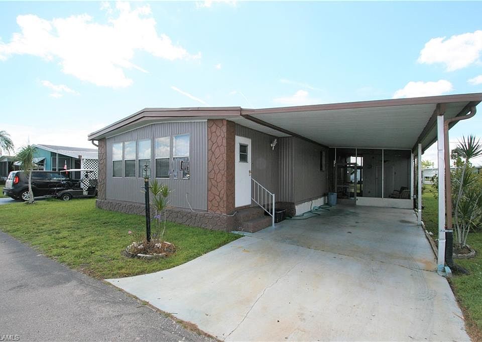 Furnished Manufactured home in Tamiami Village. Tamiami Village is an active lifestyle community. it is also a pet-friendly community. The community is age restricted to 55 and up! The community has heated pools, a clubhouse with a full schedule. You can spend your day's in the library after your morning session in the exercise room. There is also shuffleboard courts, horseshoes. There is also billiards available. The Master Bedroom features a walk-in closet. The large carport has a workshop that also contains the washer and dryer. The dining room has some built-in cabinetry. This home sits on a deeded lot. The monthly fee is $182.00 a month.