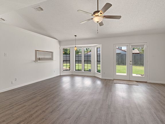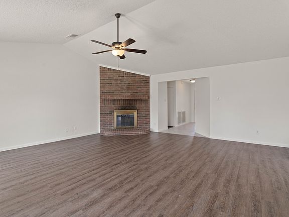 Large corner lot! Home is light bright and open with an open floor plan. Brick wood burning fireplace. Kitchen with smooth cook top range, pantry, and breakfast bar. Master bath has body sprays, dual shower head, and seat. Master closet has an organizing system. Laminate wood, ceramic tile, and carpet flooring. Back yard has open porch, dog run and large storage shed. This will move fast view it today!