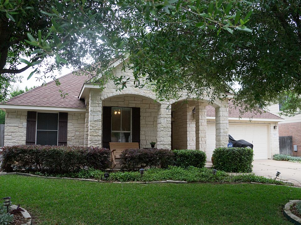 Come relax with a cool glass of ice tea on the front porch of this lovely white Austin stone home located on a cozy interior street of neighborhood. This unique floor plan (1.5 story) has everything on main level & a large bonus/game room & 1/2 bath up. Spacious kitchen has abundant counter top and cabinet space & is open to the breakfast area. Formal dining room is open to family room & perfect for entertaining! The neighborhood has many amenities (pool, tennis, volleyball, trails) for you to enjoy too!