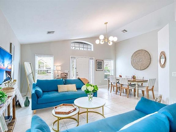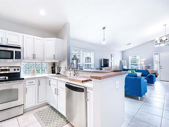 On Zillow you may see the 3D virtual tour in the facts and features section. Discover this beautifully renovated 2 bedroom 2 bathroom residence tucked away on a tranquil court in one of Naples desirable neighborhoods. Step inside to a bright, open concept living space with soaring vaulted ceilings and sunlit windows that fill the home with natural light throughout the day. Enjoy recent high-value upgrades, including a tankless water heater, central air conditioning (2018), a new shingle roof (2021), fresh interior and exterior paint (2021), all impact-rated windows and front door rolldown (2023), and elegant quartz countertops in both bathrooms (2022). An oversized one car garage flows seamlessly into a utility room with a washer and dryer, offering convenience and extra storage. Relax in the private, screened-in lanai surrounded by lush greenery, your perfect outdoor retreat. This rare detached villa in the Queen's Park Bougainvillas community offers the convenience of condominium ownership benefits with feeling of a single family house, low HOA fees covering landscaping, outside pest control, irrigation water and added peace of mind : no flooding from previous hurricanes. Flooding zone is AE. Located less than 5 miles from Naples finest beaches, shopping and dining, this move-in ready property blends comfort, convenience, and an unbeatable location. Don't miss your chance to call this adorable oasis, home. Schedule your private tour today!