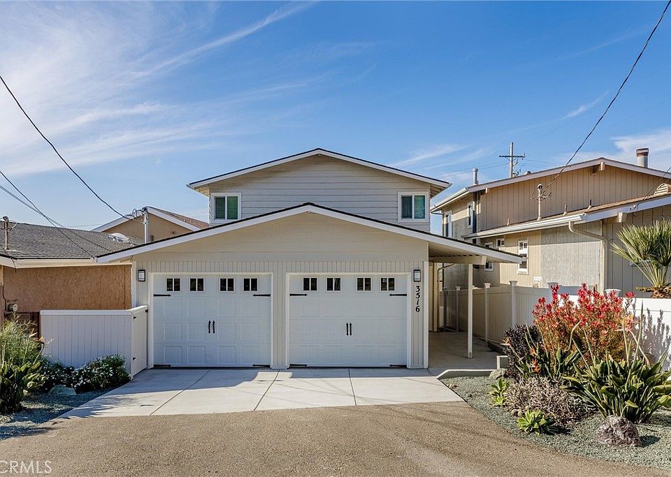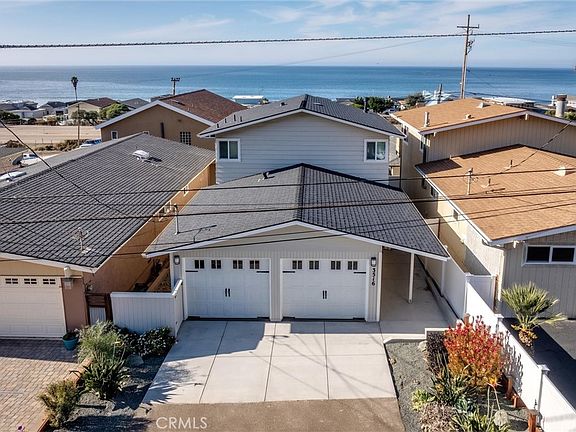Versatile Views highlight this immaculate ocean view Cayucos Strand residence. Located on the South side-it is close to Cayucos businesses and those of Morro Bay. Coastal Access points are just across HWY 1. A wide driveway with landscaped shoulders leads to an oversized 2-car garage with utility hook-ups. There are two ample bedrooms and a full bath on the lower level. The upper level great room has vaulted ceilings, full width view deck and a cozy fireplace. The ample kitchen has good storage and more compelling views. A half bath completes the upper level plan. Many use options here and this quality is rare. See supplement list to review the $120K of recent improvements including new roof, rebuilt decking, and hardscape.