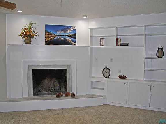 This immaculate home is located on a quiet cul-de-sac. Lots of curb appeal with a new front lawn. The large living room features a wood burning fireplace with a new mantle, built-in cabinets, step down, 2 ceiling fans and sliding doors to the backyard. The kitchen has white cabinets, white appliances, eat-at bar and a dining area. The master bedroom in the split bedroom floor plan has a large walk-in closet and bath with walk-in shower. Bedroom #1 has 2 closets with bifold doors and the hall bath features a single vanity, tub/shower combo and built in cabinets. Bedroom #2 has a closet w/bifold doors - plus there are 2 small bunk rooms that will sleep 4. This unique layout has lots of possibilities. The Utility Room has built-in cabinets above the washer & dryer hook ups. The backyard has a covered patio, nice landscaping and an 8' x 10' cinder block storage building.