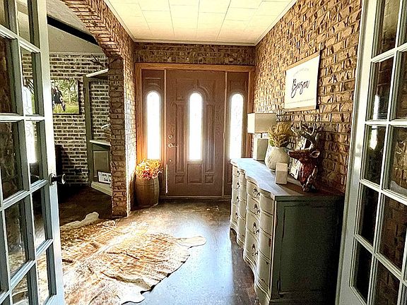 NEW TO THE MARKET! 4 bedroom 2 bath brick home situated back off the road on 3.55+/- acres in Enterprise School District! This home provides a spacious floor plan, offering just over 2200+/- Sq ft heated and cooled with a metal roof. Double brick, cathedral ceilings, stained concrete flooring, custom cabinetry, oversized laundry, 2 car enclosed garage, large bedrooms, spacious dining with a wood burning fireplace both In the dining and living room and an eat-in kitchen. These are just some of the great features you will find in this home. The hallway is extra wide making it handicap accessible with wide interior doorways throughout the home. On the property you will find a barn, a small cinderblock shed housing the water well, a fenced in dog yard and camper hook up for power. Located on the back side of the home is an outlet for a generator. If you are in the market for a home with tons of character, filled with love & solid as a rock, this could be the one for you! Schedule your private viewing today.