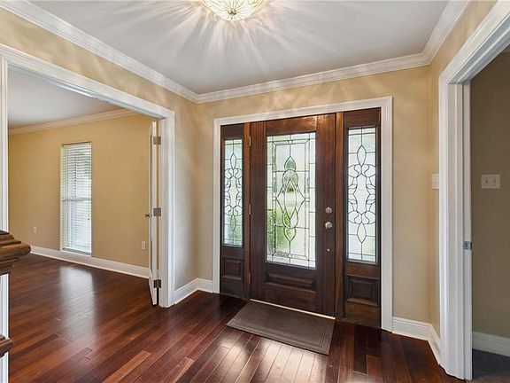 Enjoy the elegant Brazilian cherry hardwood floors and a flexible layout perfect for any lifestyle. The home features a formal dining room, a cozy gas fireplace, and a spacious breakfast area. Host gatherings under the large covered carport, ideal for entertaining and parking.