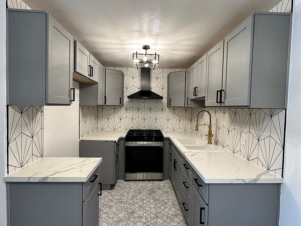 LOCATION LOCATION LOCATION! TRENDY TWO BEDROOM, ONE BATH APARTMENT IN THE HEART OF EL MONTE! BE THE FIRST TO LIVE IN THIS NEWLY FULLY REMODELED APT! Conveniently located to the 10 and 605 freeways. A few more driving minutes will take you either to the 60 freeway or the 210 freeway. Whether driving or walking, you'll notice the serenity of the apartment complex upon entering the gated front entrance. Enjoy the natural lighting throughout this upstairs apartment during the day while relaxing to the ambient lighting provided by the numerous Edison light fixtures during the night:) This SPACIOUS apartment has a kitchen with a backsplash that looks like wall paper but consists of actual porcelain tiles. The new kitchen appliances enhances the chef in all of us with ample quartz counter space to support our delectable dishes:) This happening unit with extra wide French doors that leads out to the balcony rents for $2080 per month with a $2080 security deposit, no pets please. One Reserved carport parking spot is included along with water, gardening, and trash. Off street parking available and laundry facilities are onsite:) No pets please