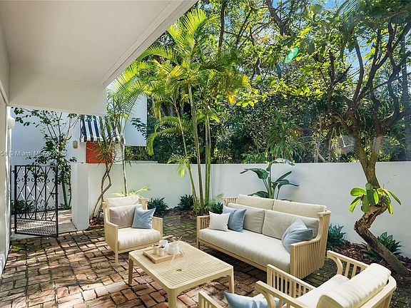 Tranquil and secluded South Grove two-story townhouse surrounded by lush tropical landscaping. Tucked away from the street, the residence offers ample parking and privacy. A sunny interior opens to a private courtyard, ideal for outdoor gatherings. The home features central air conditioning and a freshly maintained interior. The primary suite includes a walk-in closet and a balcony overlooking a beautiful oak canopy. Perfectly located at the east end of Loquat Ave, just a short walk to restaurants, shops, bayfront parks, and the area's sailing and yacht clubs.