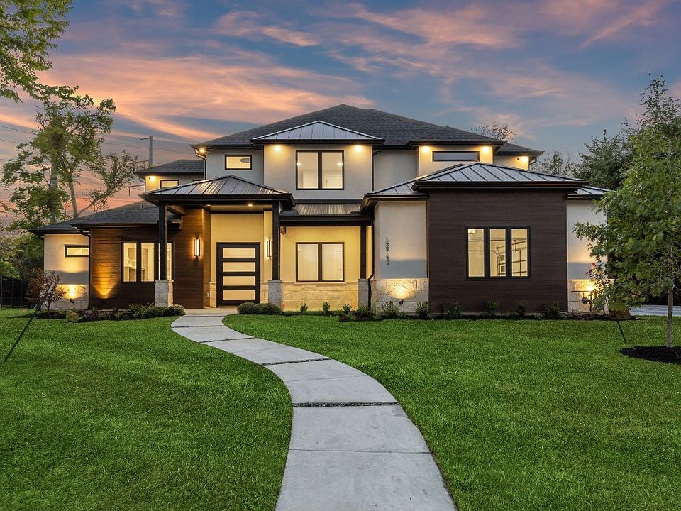 Experience modern luxury in this architectural masterpiece. Nestled in a serene neighborhood, this newly constructed home exudes craftsmanship and contemporary elegance. Inside, natural wood floors create a seamless flow. Double-height ceilings amplify the airy ambiance, bathing spaces in natural light. The gourmet kitchen is a chef's dream with top-tier appliances and sleek design. A discreet pantry enhances functionality. Bedroom suites on the main level provide convenience and custom closets blend storage with style. Forward-thinking construction features foam insulation and soundproofing, ensuring year-round comfort. Floating iron stairs lead to upper-level bedrooms and versatile spaces.Extensive outdoor lighting enhances beauty and security, while the garage showcases epoxy floors. Rest easy with a 10-year foundation and structural warranty. This modern home epitomizes luxury living with its design, construction, and amenities. Seize this opportunity for sophisticated comfort.