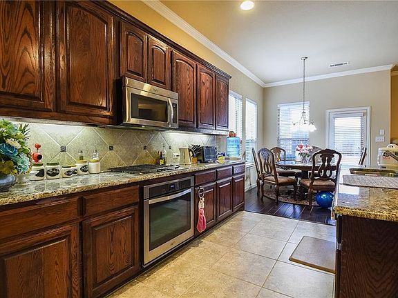 Beautiful Paul Taylor custom home in sought after community of Wagon Wheel. Special features include Stone & brick elevation, rich wood floors, crown molding, decorative lighting. iron balusters, abundance of windows for added natural light, second kitchen complete w sink & multiple cooking surfaces including gas grill! Spacious open floorplan is perfect for entertaining w kitchen that opens to living w granite, SS appls, gas cktp & lg breakfast bar. Private master down w jetted tub, sep shwr, H+H sinks & WIC. One secondary bdrm down with 3 bedrooms up & one w private bath. Upstairs also features generous game room & media room.