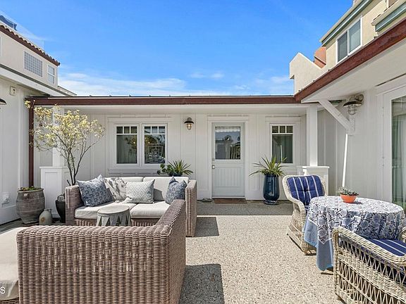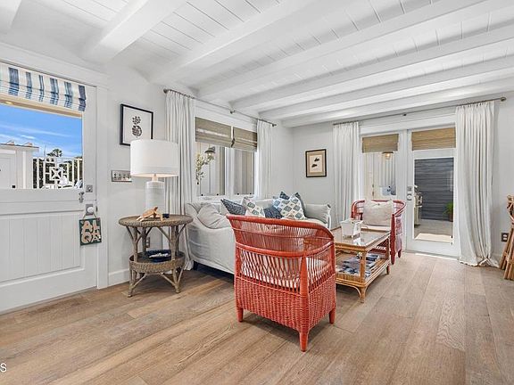 Discover this exquisite beach cottage located on an oversized lot on Hollywood Beach, just steps from the ocean and marina, and a short walk to the Sunday Farmers Market. This low-maintenance, highly upgraded home underwent a complete renovation in 2014, featuring custom details and a classic, timeless design. As you enter through the private, enclosed front patio, you're welcomed by an inviting space perfect for hosting friends and family. The interior boasts 2 bedrooms and 2 baths, with meticulous attention to detail throughout. Enjoy custom window treatments, built-in bunk beds, and a primary bedroom complete with a walk-in closet and French doors opening to the front patio. The kitchen is light and bright, with upgraded appliances and a great flow, seamlessly connecting to the living room. Double doors lead you to a stunning outdoor oasis, perfect for relaxing or entertaining. This separate outdoor living space features a custom patio cover with a unique hanging lamp, electric heaters, an outdoor fireplace, an outdoor sink, and a custom counter along the wall for additional seating or serving. The back area of the house includes an outdoor shower and convenient access to an interior bathroom. A two-car garage with floor coating and a laundry area completes this exceptional home, which also offers ample front parking for guests. Whether you're seeking a perfect weekend getaway or looking to downsize in style, this home truly has it all.