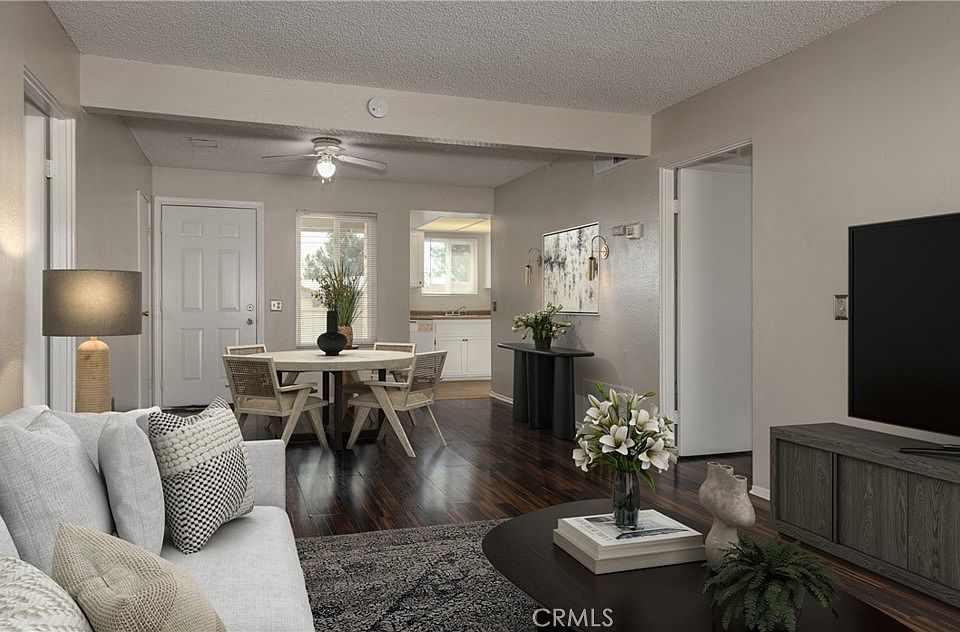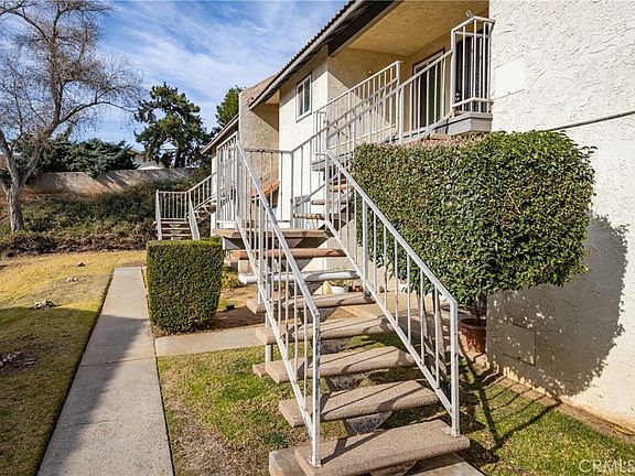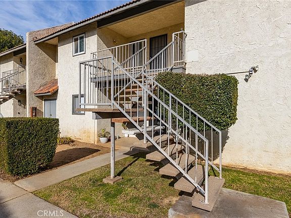 This condo, located in Villa Mesa Grande, is an upstairs unit and is situated in one of the end buildings which means there are no neighbors on the backside of the home. Instead one has peekaboo views of the local mountains from both bedrooms, the main living area and from the balcony. Each of the 2 bedrooms has its own full bathroom and walk-in closet. A laundry closet with stackable washer and dryer is located in one of the bathrooms. The living area is spacious and has a sliding door that opens to the balcony where there is an extra storage closet. The kitchen comes equipped with a stove and dishwasher and the cabinets have been freshly painted. Notable features include dual pane windows, newer water heater (11/24), new paint throughout, as well as the freshly painted kitchen and bathroom cabinets, new carpet in the walk-in closets and new flooring in one of the bedrooms and both bathrooms and a NEW garage door. The monthly HOA is $370 and includes access to the clubhouse, tennis court, half basketball court, pool and spa. The unit has an assigned garage (not all units have this space) and ONE uncovered parking spot. This condo is close enough to freeways, restaurants, and shopping (1 mile to Stater Bros) but just far enough from the hustle and bustle to enjoy the peaceful countryside and mountain views.
