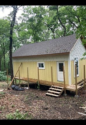 This is basically a brand new cabin-type dwelling, built in January 2024, and sits on 9.9 acres, all of which is included in the sale. This house was built by the seller, and is not completed, however it is estimated to take $20K to $40K to complete, which would still be under the appraised value of the structure and acreage. Seller will cooperate with a buyer to let them know exactly what needs to be done to complete the project. The cabin would be perfect for someone to get away from it all, yet be close enough to groceries, restaurants, or other supplies. The property's foundation is piers. There is plenty of woods to explore with this quaint piece of property.