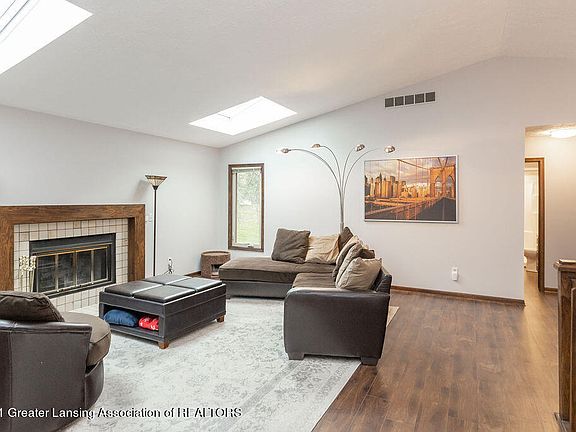 Come and take a look at this fully renovated home, nested in the highly desired Woodland Trails Condominium/Spring Lakes neighborhood in Okemos! This home is a stand-alone 2, 504 sq. ft. look-out ranch with 3-4 bedrooms and 3 full baths nestled on a cul-de-sac surrounded by mature trees. The home underwent a wide-ranging renovation (see attachment for upgrades). The air lock foyer leads to a spacious living room with new luxurious vinyl plank floors, a fireplace, cathedral ceilings with skylights and remote blinds; there is an adjacent study/bedroom and a dining area, leading to a lovely new kitchen with rich cabinetry, quartz countertops, and all new stainless-steel appliances. The fully renewed large 3-seasons room with skylights can be accessed from the kitchen and the primary suite, which is generous in size offering a walk-in closet, and its own updated private bath. The second bedroom is next to a full bath furnished with a new shower.