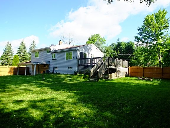 The split-level house design is complete with an attached deck, a separate ground level covered patio, a finished basement, fire-pit and a two-car attached garage with a wide driveway. The ground level offers front foyer entry, a newly remodeled full guest bath and laundry, access to patio, and a two-car attached garage. The first level offers a spacious living room, dining area, kitchen, and access to the attached deck. The second level offers a newly remodeled full bath, master bedroom, and two additional bedrooms. The lower level offers a large finished bonus recreational area that can be used for gaming or other entertainment activities, along with a separate utility room.