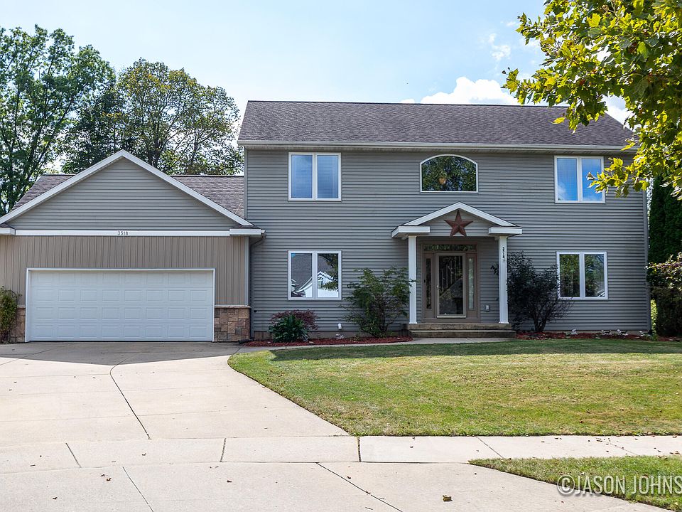 Welcome to 3518 Sunrise Lane — a custom-built 4 bed, 3.5 bath home tucked on a quiet cul-de-sac in Kenowa Hills Schools. Impeccably maintained and lovingly cared for, this home shines with pride of ownership. The main floor offers a bright kitchen with beautiful cabinetry and abundant storage even a food network star would appreciate! The dining area is filled with light and backyard views, and an inviting great room perfect for game nights or cozy evenings in. A private office and half bath complete the main level. Upstairs, the primary suite feels like a retreat with its ensuite bath and walk-in closet, joined by two additional bedrooms. The daylight basement adds a family room, guest bedroom, full bath, and plenty of storage. Outside, enjoy a deck and patio with built-in gas hookup — ideal for grilling or entertaining. With thoughtful updates and a home that feels truly cared for, everyday living here is easy, comfortable, and just right.