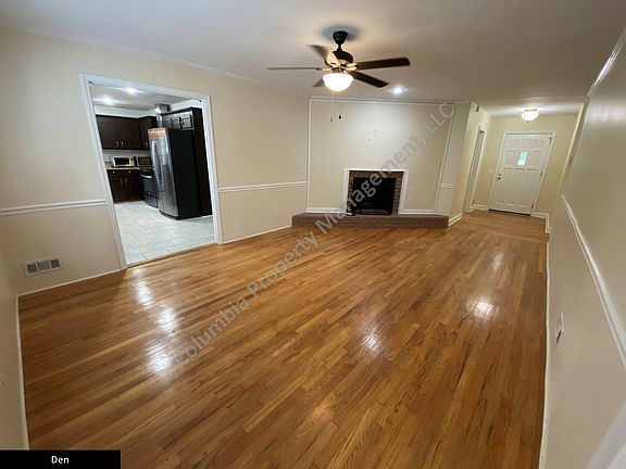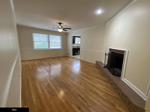 Four bedrooms, three bathrooms, combination living room/dining room and a den with a wood-burning fireplace. Kitchen includes granite countertops, a breakfast bar and stainless steel appliances - refrigerator, stove, dishwasher and microwave. Washer and dryer units included. Central heat and air. Carpet, hardwood and tile floors. Good closet space. Ceiling fans. Pet restrictions. One-car carport and off-street parking. Fenced yard with patio. Tenants responsible for all utilities and yard maintenance. NOTE: This property will not accept undergraduate students.