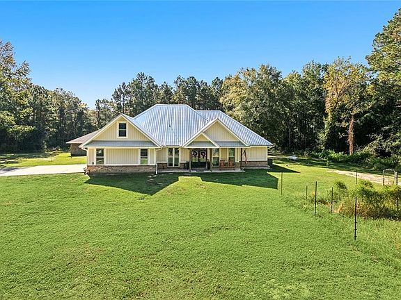 Magnificent split plan four bedroom three full bath home with separate studio apartment, sheltered behind mature trees and natural foliage on over six acres of ground. This home has all the amenities including ceramic tile floors throughout, raised brick hearth fireplace with ax cut white oak mantle in living room. Completely open to the kitchen which features quartz tops, Bosch stainless steel appliances, large eat-in breakfast bar and expansive pantry. Primary suite has triple tray, ceiling, separate, tub, and shower, and plenty of closet space. Separate room off front foyer can be used as a formal area, playroom, or office. Game room has reclaimed bead, board ceiling, and plenty of windows. Can be used for many entertaining purposes. Additional acreage available for purchase.
