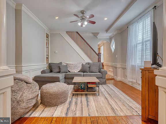 Don’t miss out on this beautiful 4-bedroom 2.5-bathroom home in historic Hampden. Located on a quiet tree-lined street, this home was renovated in 2011 and kept all the historical charm you would expect. Original hardwood floors, built-ins, custom wainscoting and a half bathroom in the living room lead you to a renovated kitchen with granite counter tops and tile backsplash, stainless-steel appliances, updated hardwood flooring, and plenty of cabinet space and shelving for storage. Built-ins throughout from top to bottom bring the home a cozy feel and a special place for all your treasured items. The two primary bedrooms on the second level each have a full bathroom for use, one of which was recently completely renovated. The other two bedrooms are located on the third story and can also work great as office space, studio, or a playroom. The backyard area has an inviting patio space with a huge grass yard - a gardener’s dream just waiting to be planted. 2 Car OFF STREET PARKING!!! Just minutes from the avenue, stores, restaurants and major highways!