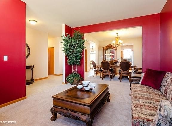 Move in ready in sought after Spring Acres Hills! This home features four spacious bedrooms set on a sprawling lot! Eat in kitchen boasts tons of cabinets, granite counters, center island, and stainless steel appliances. Adjacent family room features two story ceiling and dramatic brick floor to ceiling fireplace. Step to the backyard and enjoy the outdoors on your maintenance free "Trex" deck overlooking huge backyard! Also features sprinkler system for lush grass and greenery year round! On the main level, dual staircase offers access to second floor from the foyer or kitchen. Master suite features French door entry, walk in closet, and en suite with whirlpool tub and separate shower. Full look out basement with rough-in for bathroom ready for your finishing touches! Also has reverse osmosis system with water softener. Freshly cleaned and ready for you to move in! Newer furnace and appliances. Highly rated District 300 schools with convenient location!