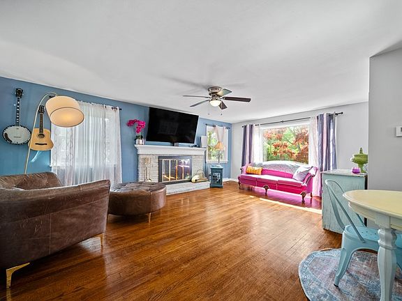 Incredible space in this charming 1.5 story home! Beautiful hardwood floors throughout, living room w/ a woodburning fireplace, eat-in kitchen w/ distressed painted cabinets. The large 2nd floor master suite offers a sitting area, 3 large closets, and an updated ensuite bath w/ a walkin shower. The lower level has 900+ SF of additional living space! You'll love the fabulous family room with built-in bookshelves and 2 additional rooms to use as you wish. So many updates... new roof (2021), updated electrical to 200 amp service, all newer vinyl windows, new A/C (2022), new bath & kitchen floors (2024), water heater (2023) & new light fixtures throughout. Outside, a vast fenced-in yard awaits, providing the ideal setting for outdoor gatherings and entertaining. Whether you're roasting marshmallows around the firepit or harvesting fresh produce from the large vegetable garden, this outdoor oasis is sure to inspire countless memorable moments with family and friends. Don't miss this!