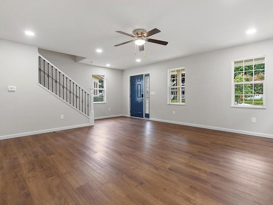 Step inside this charming two-story home and experience a remarkable use of space designed for comfort and style. The open-concept layout welcomes you with a delightful front porch with ceiling fan, perfect for relaxing. Upstairs, you'll find three spacious bedrooms, including a private master with a walk-in closet and full bath, along with the convenience of a second-floor laundry area just steps from the bedrooms. Kitchen is shining with sparkling granite countertops, sleek stainless steel appliances, and a cozy corner dining nook. Downstairs, the large basement has an egress window and is rough-in for a future bathroom. Easy to finish for additional living space. Outside, enjoy a charming backyard and the convenience of a large three-car garage. An incredible value!